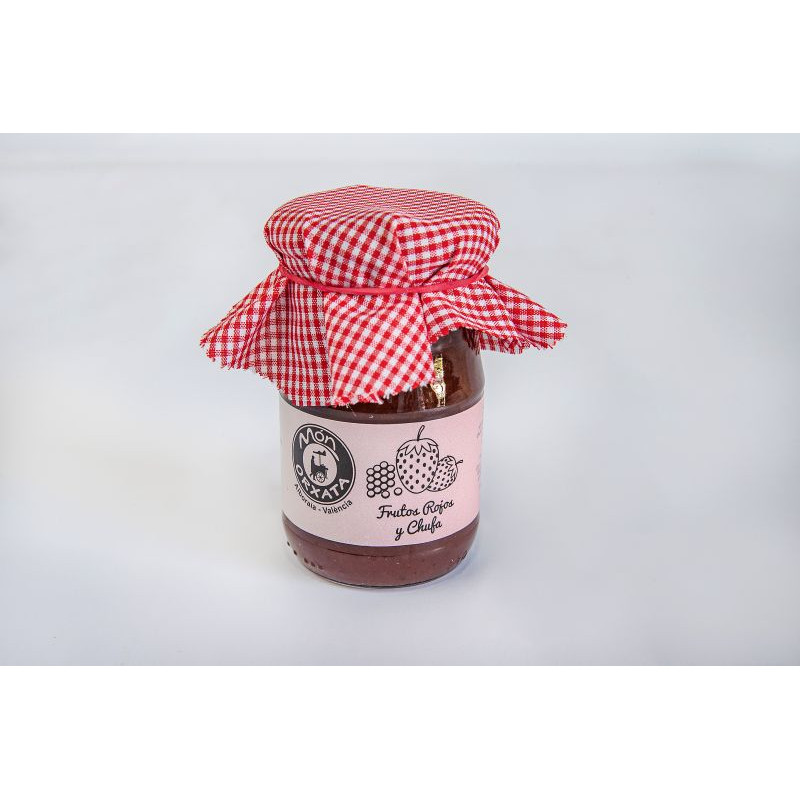 Ingredientes: Chufas de proximidad y cultivo propio, azúcar, fresas, zumo de limón, pectina de frutas.
